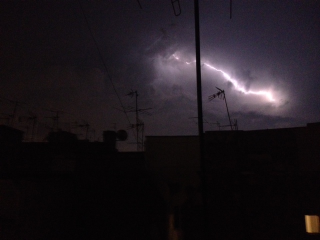 After about half an hour, the lightening moved on, and a lower, flatter, lighter group of clouds moved in. These were so low, and so white that they reflected the light of the city and illuminated the atmosphere. It was so bright, it almost looked like dusk or dawn, and I could read my book outside without any luminescence at all. I unfortunately wasn’t able to capture this aspect of the storm with my camera, but I did snag a few photos of the lightening.